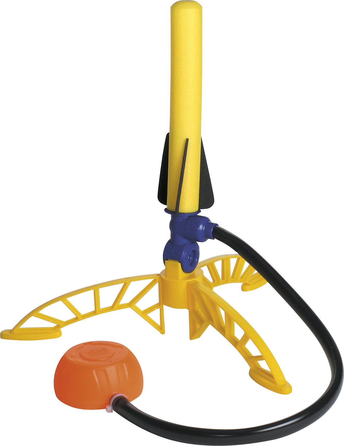 Fly high with the best-selling Lanard Sky Rocket air-powered launch rocket set. Includes an adjustable flight launcher, 12-inch-diameter launch pad, and 3 foam rockets. The launcher can be set up at different angles for superior, air-powered fun. Just jump, stomp, or press down on the launch pad to make each rocket fly. The 3 colorful foam rockets each measure 8 inches long and are two-toned with a solid orange base and black wing tips. Rockets can fly up to 75 feet high! Launch 1 rocket at a time. This launch rocket toy is best suited for outdoor play. Colors and packaging may vary.